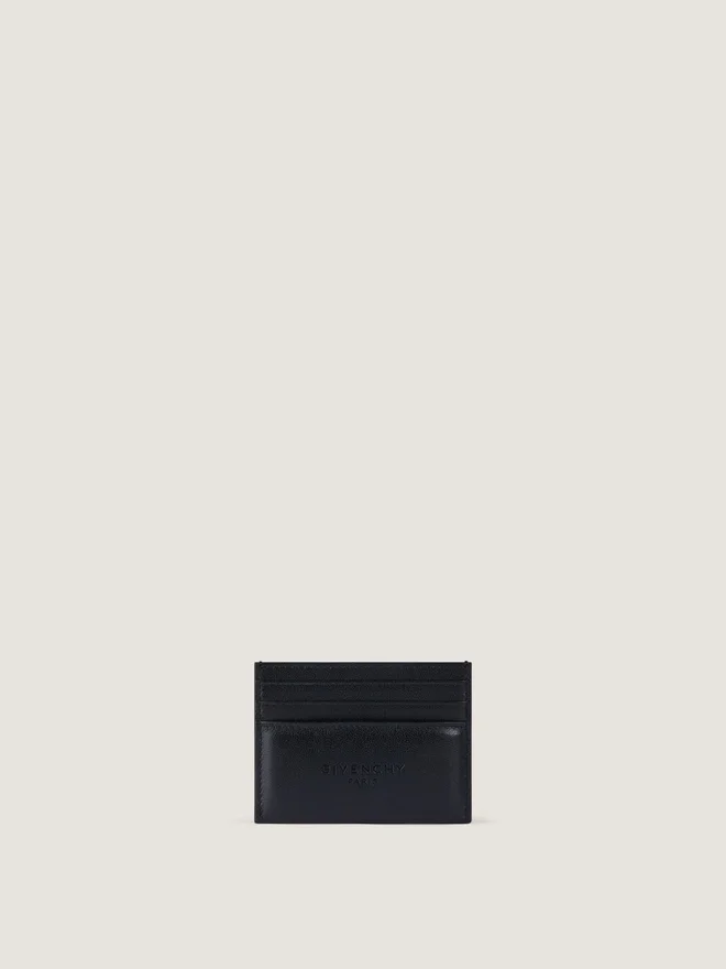Card Holder in Padded Calfskin Leather. Antigona Stamped Line. Givenchy Paris Signature Debossed on the Front. Six Card Slots : Three on Each Side.