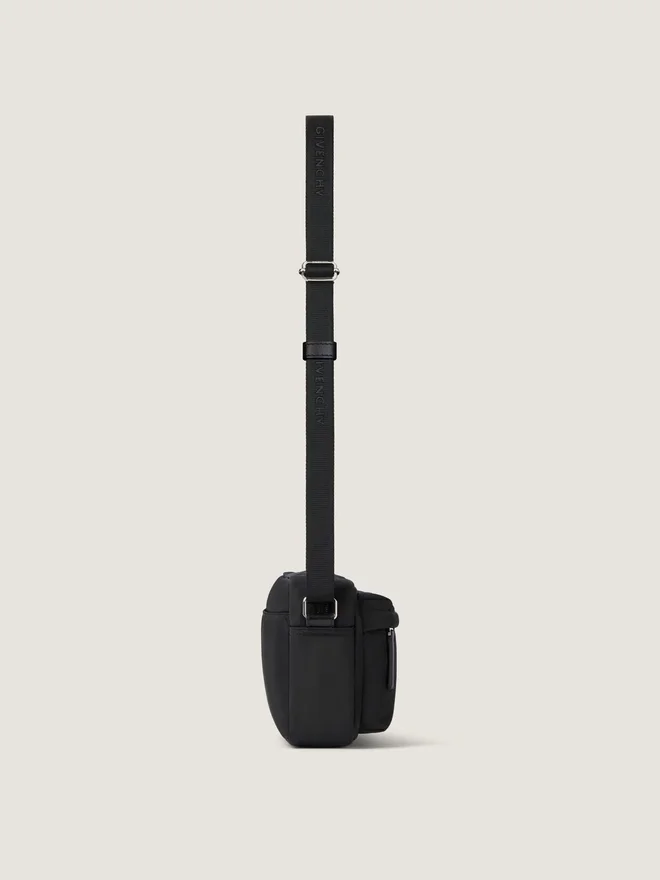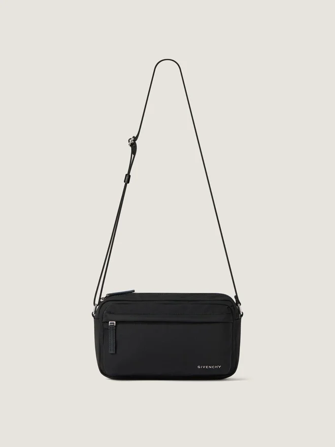 Bag in Nylon. Essential U Line. Zipper Closure with Leather Zipper Pull. Adjustable Givenchy Webbing Strap for a Crossbody Carry.