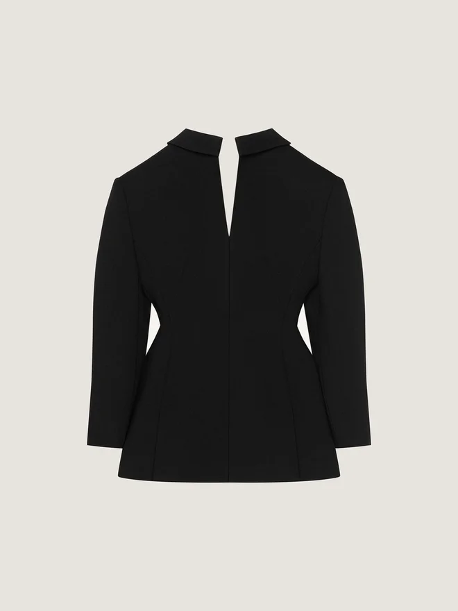Structured Jacket in Wool Crepe. Back to Front Effect. Sliced Details on the Front and Back. Satin Notch Lapel on the Back.